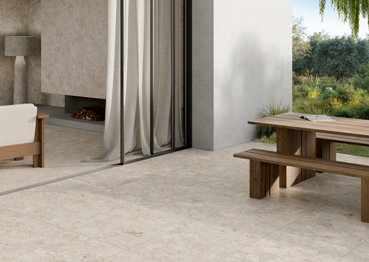 Jura Mood_Fondovalle, gresie portelanata (3 culori) cu grosimea de 2 cm pentru exterior.